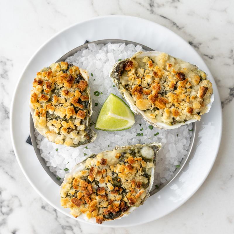 A rich savory delicacy where fresh Oysters on the half-shell are roasted or broiled with flavorful toppings until tender and bubbly.